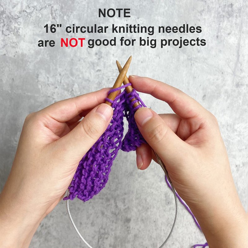 - 1 of 16" (40cm) circular bamboo knitting needles.Each needle tip length is 4.13".The cable length is 7.48".Total length is 16",suitable for small knit projects,like beanies,sleeves,hats,glove.