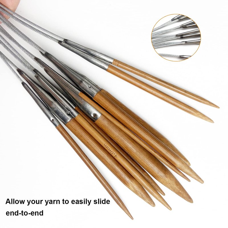 - WHY choose our knitting kit - Our knitting needles are made of bamboo which has been carbonized for a smooth finish to avoid any rough edges.They are smoother and lighter which is great for those that suffer with joint pain as they require less tension and come with a handy thumb rest.The join of the needle&cables are smooth and sturdy.Not break easily or snag yarns like other products.Steel cable allowing your yarn to easily slide end-to-end