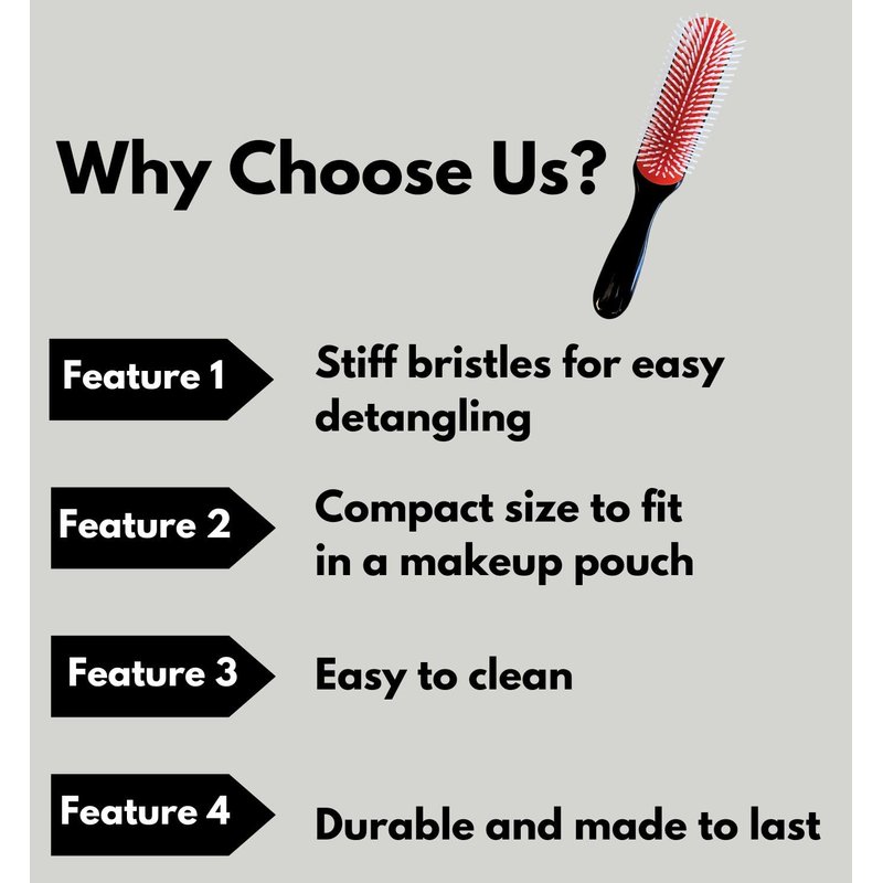 1. PERFECT FOR WAVY, CURLY, AND THICK HAIR: Our Hair Brush is specifically designed to excel on wavy, curly, coily and thick hair types, providing effortless detangling and curl defining for a flawless look. 2. LIGHTWEIGHT AND DURABLE: This brush is lightweight yet sturdy, ensuring long-lasting performance and easy handling during styling. 3. OPTIMAL DETANGLING AND CURL DEFINITION: The firm bristles work wonders for detangling even the toughest knots and tangles, while also enhancing the natural curl pattern for beautifully defined locks. 4. CLASSIC SLIM DESIGN: With its sleek and slim classic design, our Hair Brush exudes elegance while offering excellent control and precision during styling. 5. COMPACT AND TRAVEL-FRIENDLY: Measuring 7.87”L x 1.57”W x 1.38”H and weighing a mere 2.20oz, this brush is perfect for your on-the-go styling needs and easily fits into your travel bag or purse.