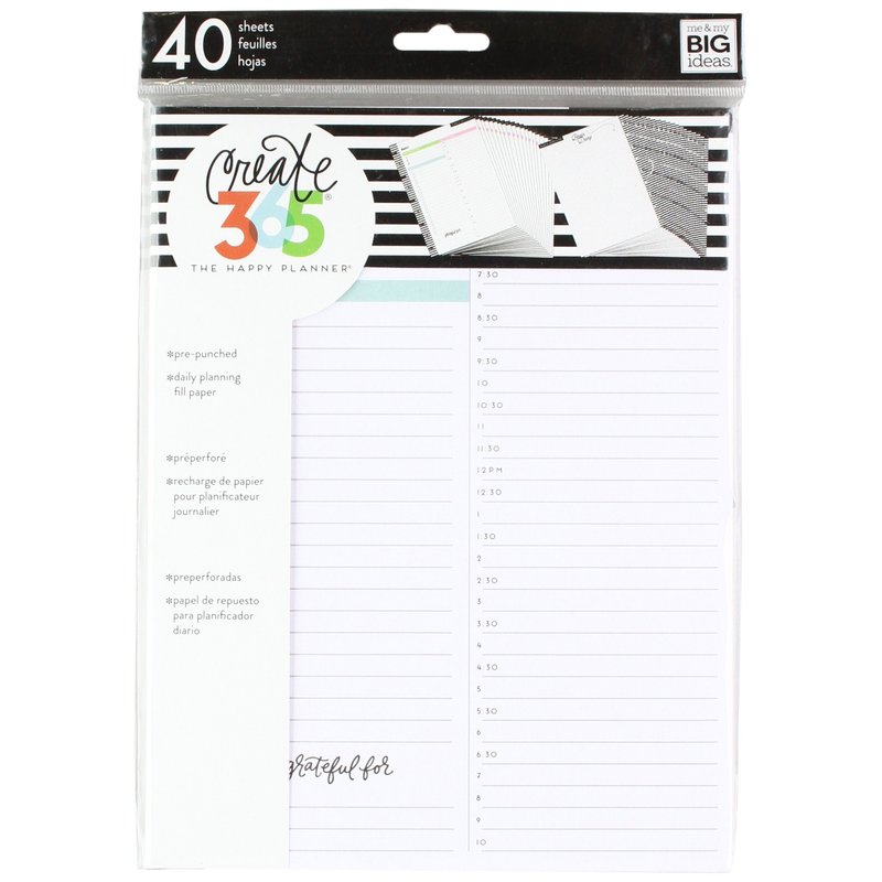me & my BIG ideas Daily Planning Sheets - The Happy Planner Scrapbooking Supplies - 40 Pre-Punched Daily Pages - Daily Planning Fill Paper - Hourly Breakdown Slots - Make Lists - Classic Size