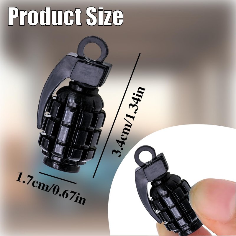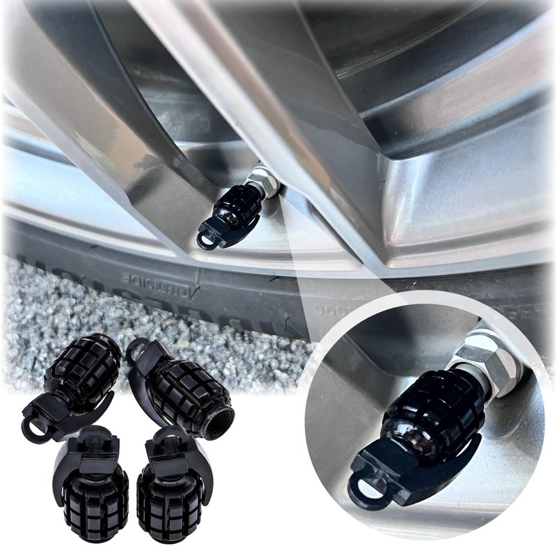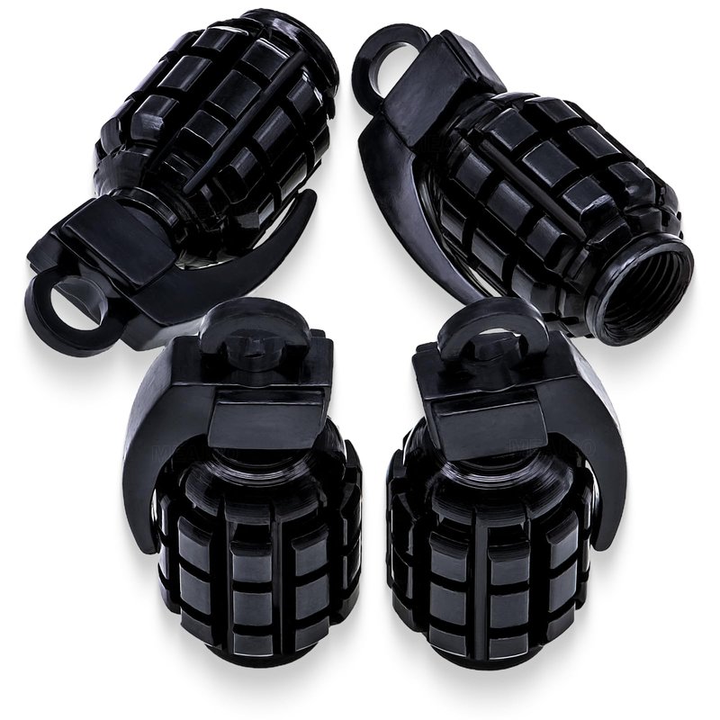 Package includes: 4 x Black Grenade Tire Valve Caps