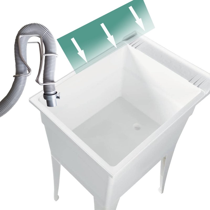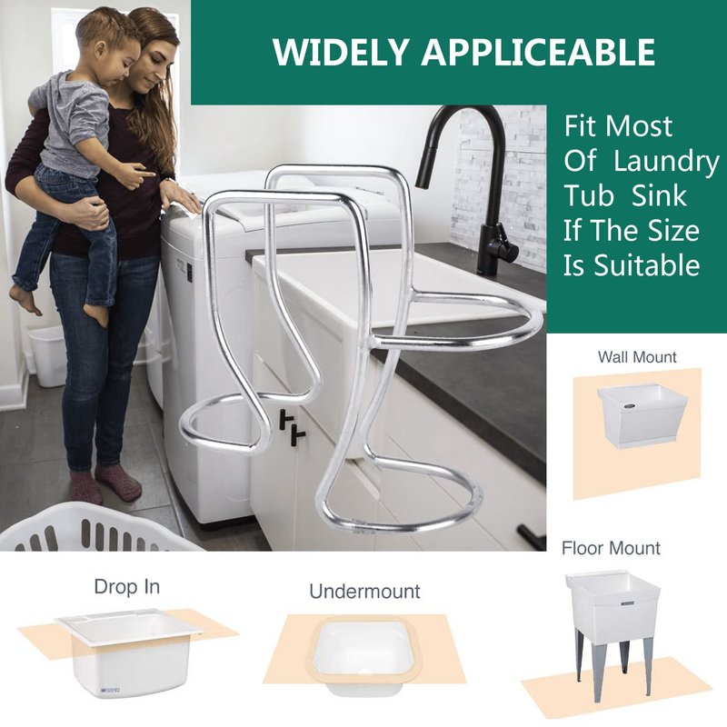 - 【EASY INSTALLATION】Just place it on the edge of your sink and thread the water discharge tube through and that’s literally it. This is a handy device. Fits easily over the edge of the washtub and effectively hold the washer hose in place.