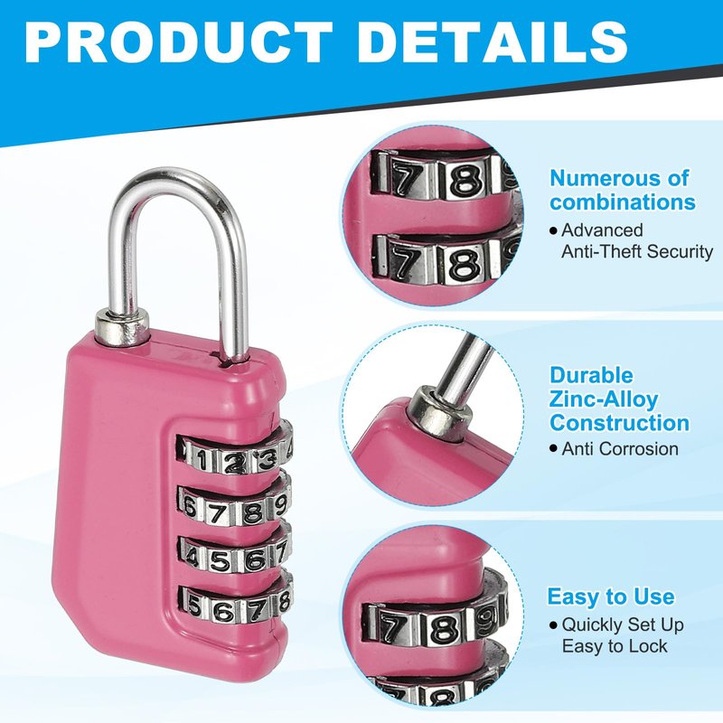 This combination lock is durable and secure with complex passwords. It is widely used in classrooms, dorms and activity room lockers. It is also used in offices for file storage and in gyms for storing valuables or clothing. Also, it is used for traveling and home items like luggage, cabinets, toolboxes and so on.