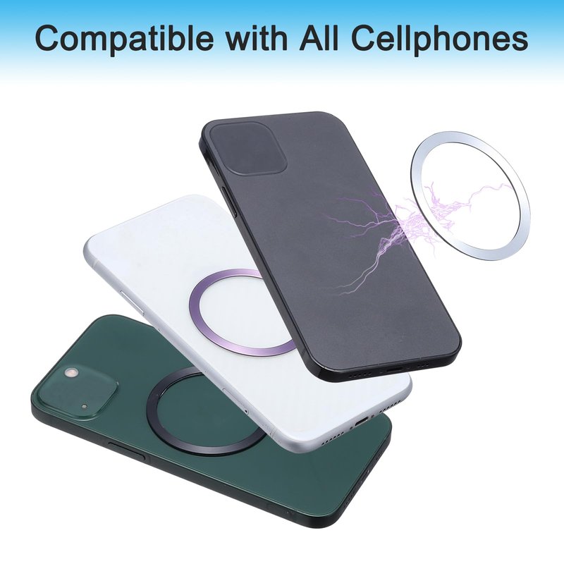 - This magnetic ring Sticker is made of metal, It can be attached to the back of the phone or the outer shell of the phone case, providing additional adhesion and magnetism for the phone, making it easy to use with other magnetic accessories such as wireless charging, phone holder, wireless car holder, etc. It is suitable for Phone, All Cellphones.