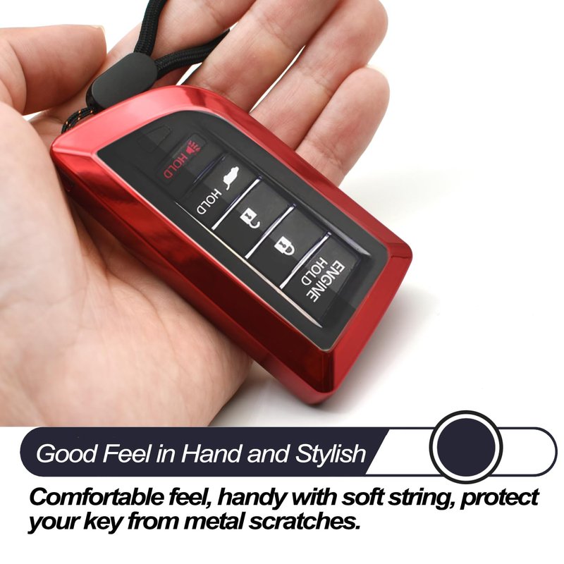 About the TPU Car Key Fob Case Cover fit for Acura Integra MDX RDX 5 Buttons with Engine Hold Smart Key, Red Color High-quality and soft TPU Fit like a glove with precise button position and shape Great key fob protection, durable, removable and cleanable Distinguishable with mirrory looking, easier to find your key Decorate your key fob, make fob key appearance to be fashionable and stylish Sturdy soft nylon cord key string helps you organize other keys, small accessories or parts. Note: For some models, it will not allow you to use the valet key if you don't pull off the cover. As a reward for yourself, and also as a perfect gift for yourself, family and friends. Special Note: Please compare the 2nd picture with your key and DOUBLE CHECK your key shape before purchase this item. With different light and monitor, there may be a slight color difference. Package included: 1 pcs TPU car key cover (Note: Not included the key fob) Bonus Item: 1 pcs nylon cord key string