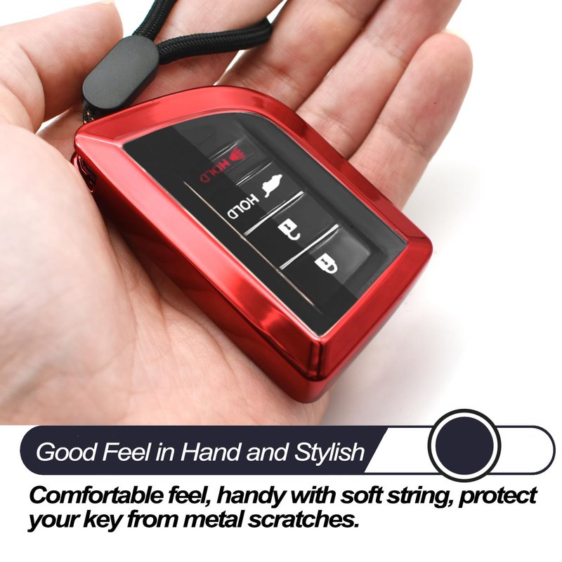 About the TPU Car Key Fob Case Cover fit for Acura Integra MDX RDX 4 Buttons Smart Key, Red Color High-quality and soft TPU Fit like a glove with precise button position and shape Great key fob protection, durable, removable and cleanable Distinguishable with mirrory looking, easier to find your key Decorate your key fob, make fob key appearance to be fashionable and stylish Sturdy soft nylon cord key string helps you organize other keys, small accessories or parts. Note: For some models, it will not allow you to use the valet key if you don't pull off the cover. As a reward for yourself, and also as a perfect gift for yourself, family and friends. Special Note: Please compare the 2nd picture with your key and DOUBLE CHECK your key shape before purchase this item. With different light and monitor, there may be a slight color difference. Package included: 1 pcs TPU car key cover (Note: Not included the key fob) Bonus Item: 1 pcs nylon cord key string