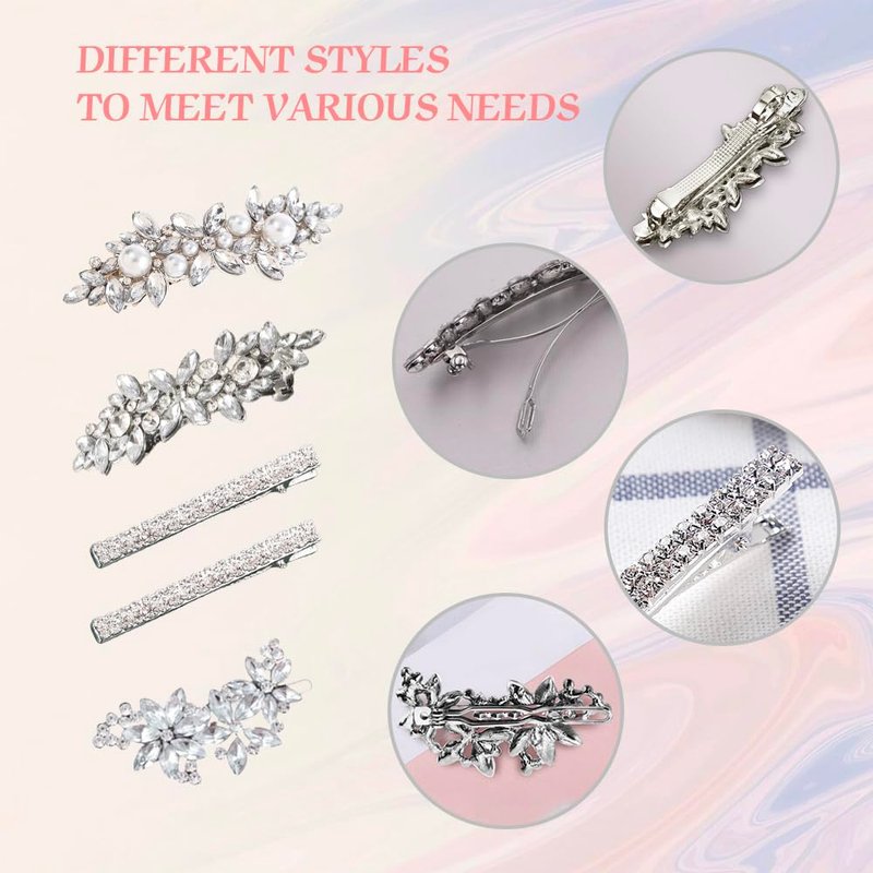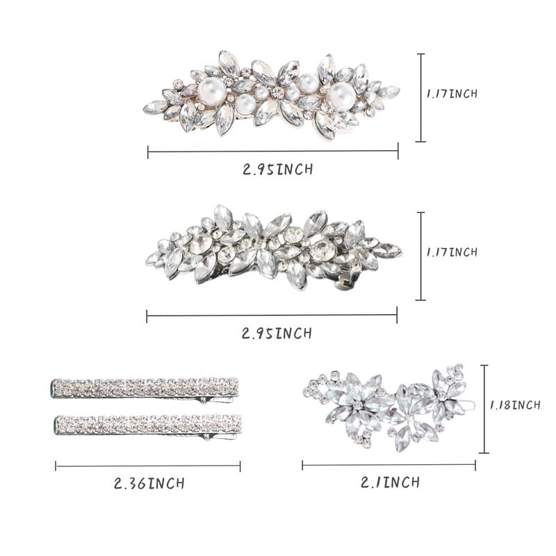 - 【Beautiful Rhinestone Hair Clips Set】:Our Rhinestone hair clips for women are full of flowers shape,sliver pearls, crystals and tiny rhinestones, elegant and glory