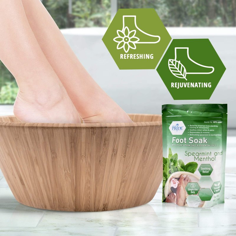- The Best Way Freshen Up Your Feet: Thanks to the healing properties of Epsom salts that have the ability to relieve muscle tension and sooth cramping, these relaxing foot bath salts are the ideal way to pamper your feet even for use after a hard day. Whether your job requires you to stand on your feet all day or not, this soothing salt bath will make your feet feel lighter and relaxed.