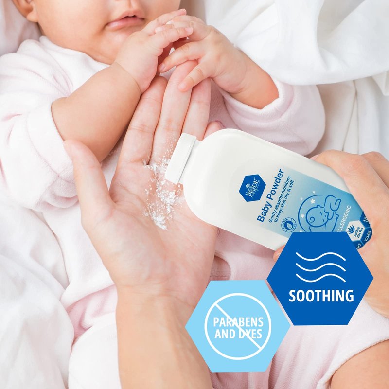 PREMIUM HYPOALLERGENIC BABY POWDER WITH ALOE VERA & VITAMIN E BY MEDPRIDE – THE FOOLPROOF WAY TO STAY FRESH, SWEAT & RASH FREE. PERFECT FOR BABIES, KIDS, ADULTS & BEYOND! Expertly formulated to gently wick away moisture, our talc-free baby powder with revitalizing Aloe Vera and Vitamin E is great to use between diaper changes to shield your baby’s delicate skin from painful rashes and irritation. Just a small amount on dry, clean skin can significantly help soothe and cool your baby’s sensitive skin and protect it from redness caused by heat, moisture and friction. Suitable even for little thighs, chubby neck skin folds, armpits or any other part of your baby’s body that is prone to rashes. 100% TALC-FREE BABY POWDER. ZERO PARABENS. ZERO DYES. ZERO FILLERS. When it comes to you and your baby’s delicate skin, less is more. Our cruelty free baby powder is completely free of harmful talc or any other artificial fillers. ENRICHED WITH SOOTHING ALOE VERA AND NOURISHING VITAMIN E Our skin protectant baby powder is packed with Aloe Vera that offers great soothing and restoring action to promote the faster healing of rashes and irritated skin. Along with the great nourishing properties of Vitamin E, your baby’s beautiful skin will soon feel as soft, supple and healthy as ever. MULTIPURPOSE BODY BABY POWDER FOR ENDLESS USES * Prevent Chaffing – Just use some powder between your thighs to reduce friction * Reduce Sweating – By absorbing excess sweat and unpleasant odors * DIY Dry Shampoo – To absorb oiliness and keep your hair looking full and fresh * Heat Rash Relief – Great to use around your breasts, bra, neck or “down there” PROTECT DELICATE SKIN FROM EXCESS MOISTURE & ITS PAINFUL SYMPTOMS IN THE MOST NATURAL, EFFECTIVE AND EASY WAY – WITH SOME HIGHLY ABSORBENT PURE CORNSTARCH DUSTING BABY POWDER. ORDER YOURS TODAY!