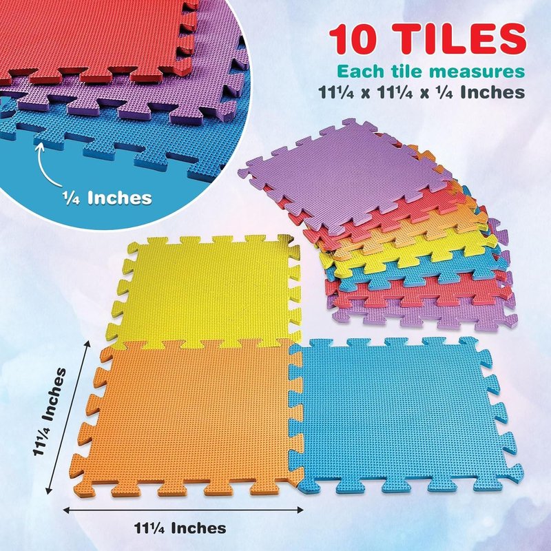 - 10-PCS OF EACH COLOR: With each order of these tile playmats for kids you will receive a 60 tiles each pack of 10 11¼" x 11¼" tiles in 1-of-6 solid colors. come which can be interlocked to form different shapes. Each piece has a unique and bright color for your child's comfort.