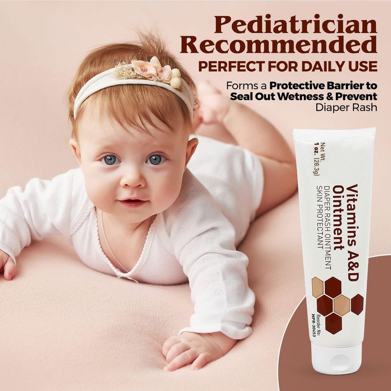 - MEDca Vitamin A & D Diaper Rash Ointment- Protectant Cream For Sensitive Baby Skin - Lanolin & Petrolatum Formula, Dry-Cracked Hands/Feet/Face Skin, 1oz Tube, Pack of 4