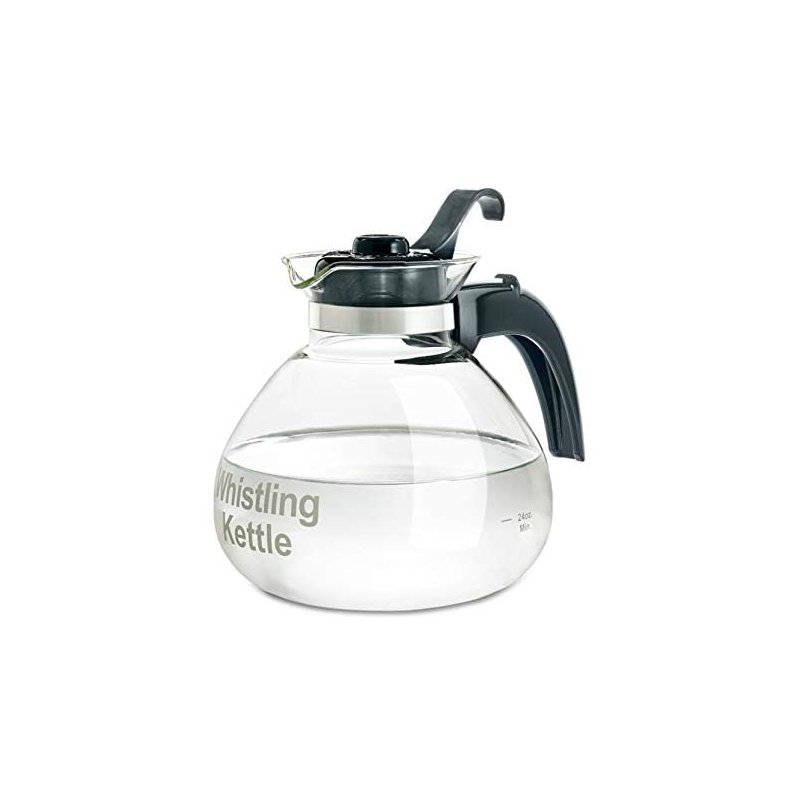 The Medelco One All brand Stovetop Whistling Tea Kettle is a great product for boiling water. This kettle is made of laboratory quality borosilicate glass from Germany and has a heat tolerant handle designed for use on gas, electric, and glass cook tops. The kettle has a 12 5-cup capacity, is stain resistant and dishwasher safe. (Includes whistling lid and metal trivet).