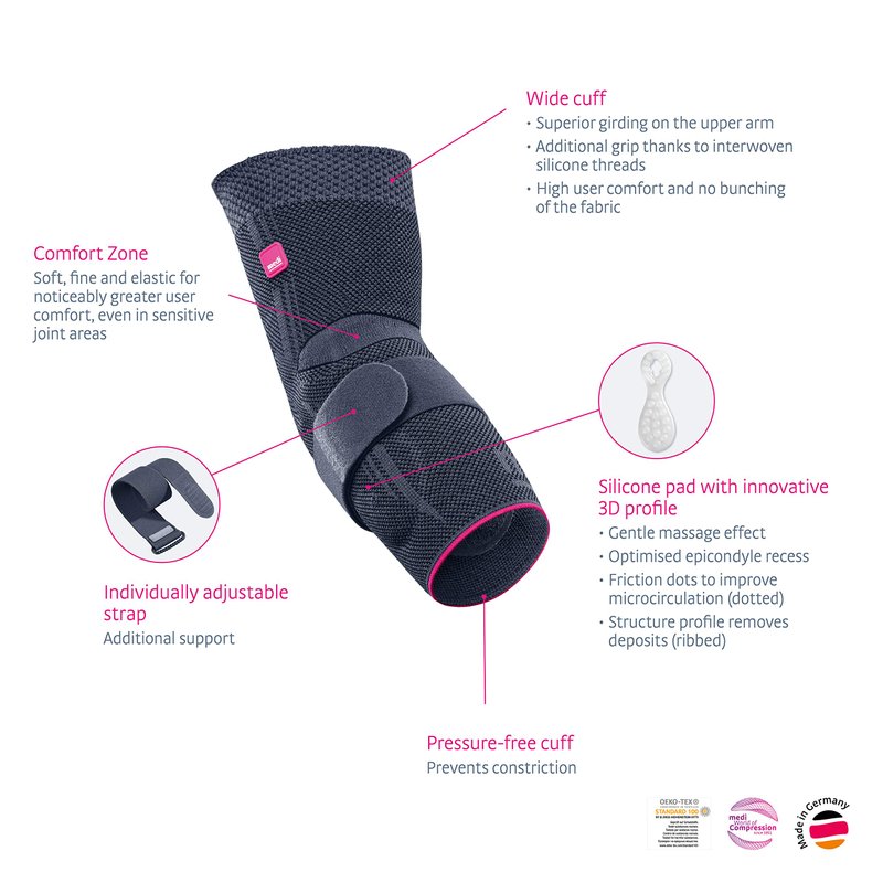 Medi Epicomed Elbow Support w/Accu-Pressure Silicone Insert Silver V