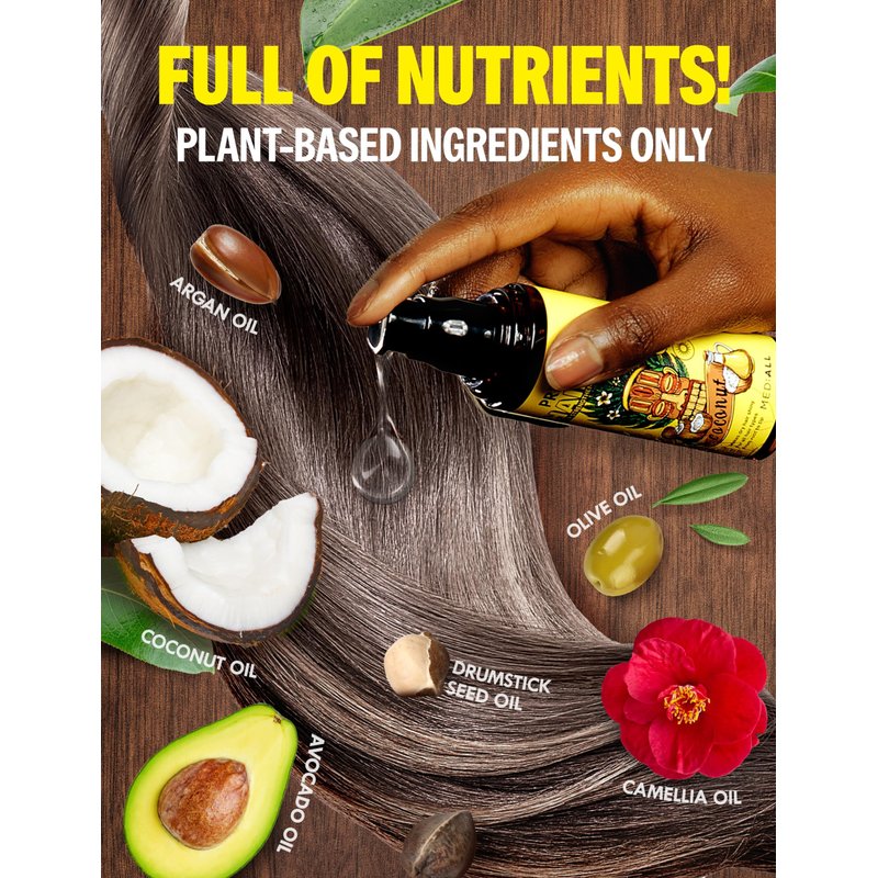 - HAIR OIL FOR DAMAGED HAIR. Infused with 6 plant-based oils—Hydrogenated Coconut, Argan, Avocado, Camellia Seed, Drumstick Seed & Olive Oils, our hair moisturizer embraces the radiance of vibrant hair. This oil for hair deeply nourishes while providing profound hydration to your hair.