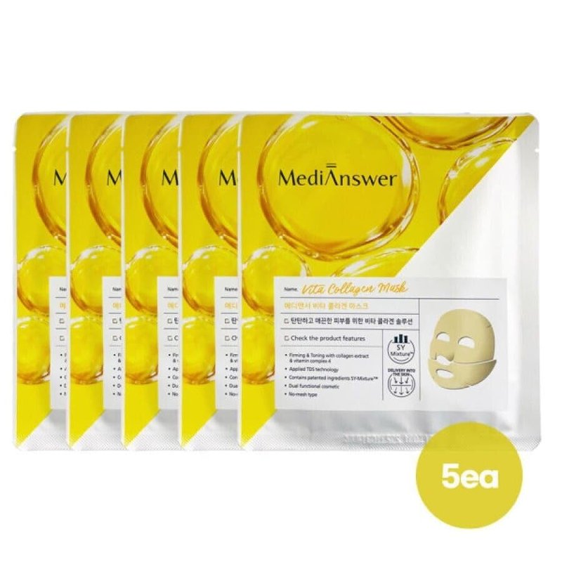 Medianswer Vita Collagen Mask 83% Pure French Collagen, Korean Beauty Brightening, Firming, Glass Skin Mask (5 pcs)
