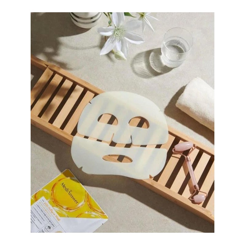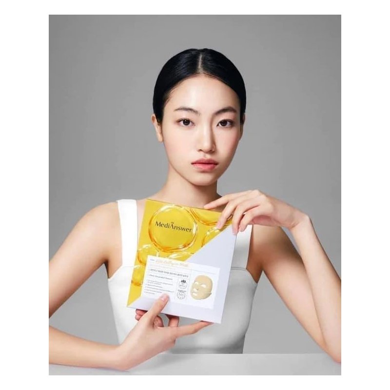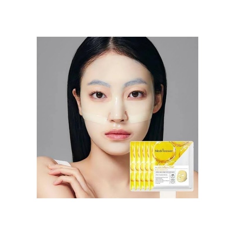 MediAnswer facial sheet mask to help you maintain moisture and firm skin by directly delivering the freshness of collagen to your skin with collagen extract & vitamin complex.