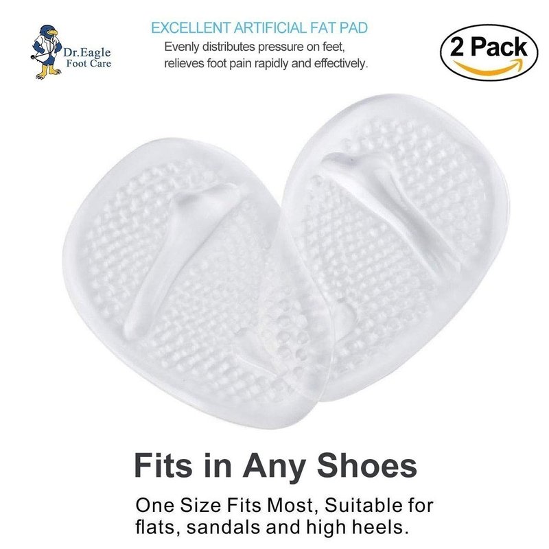 Medical Forefoot pads Ball of Foot Cushions gel Insoles shoe inserts (Self-Sticking) Metatarsal Pads for Women High Heels to Pain Relief. Dr.Eagle foot care () (Skin+Clear) 2 Count (Pack of 1)