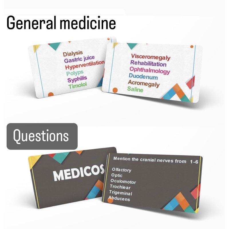 - Test Your Skills - In Medicos doctor games, you have 60 seconds to explain medical terms to your teammates. With 364 unique flashcards covering 2000+ medical terminologies, our unique nursing student essentials test your knowledge across various specialties.
