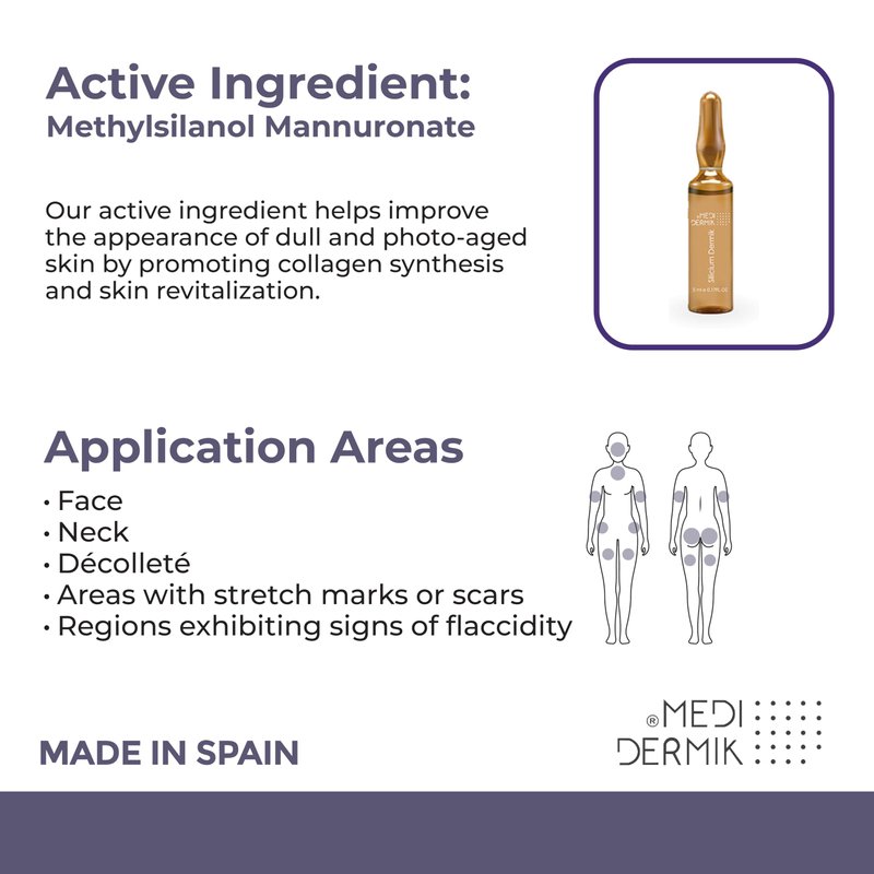 MEDIDERMIK SILICIUM. It works in saggy and damaged skin. Increases elasticity. Aestheticians' favorite liquid ampules. 20 ampoules 20x5ml/20x0,17fl.oz.
