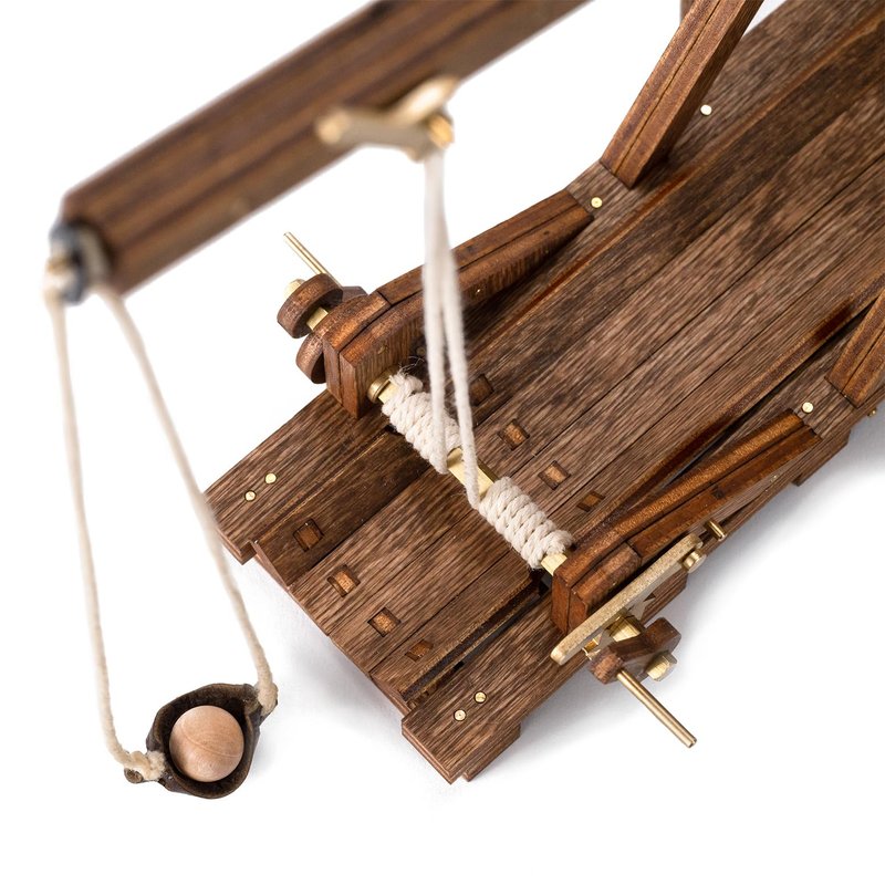 Embrace medieval fun in a compact package with this fully operational trebuchet model, perfect for desktops or offices.