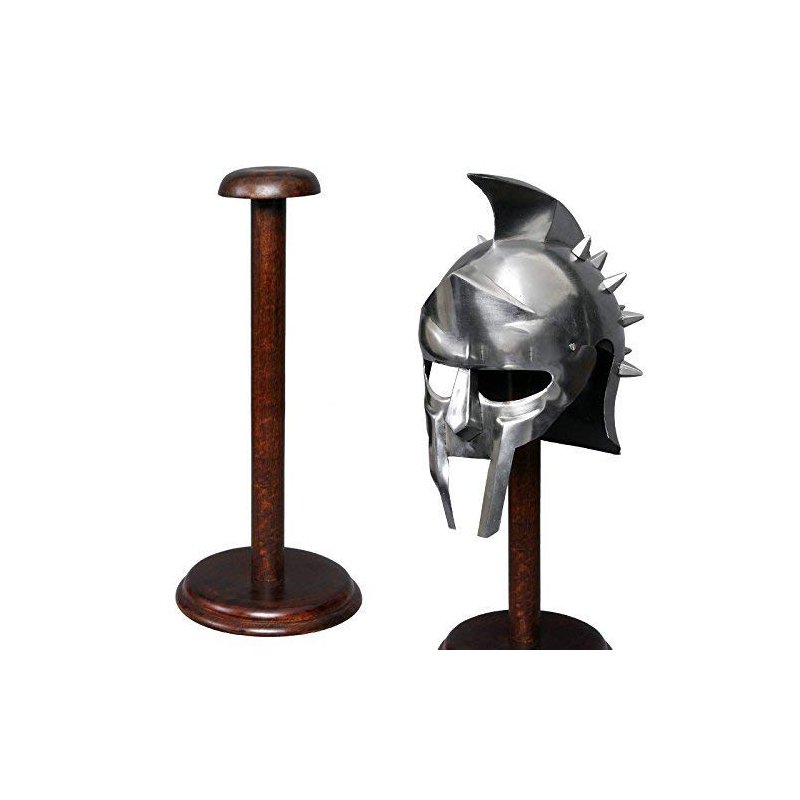 Medieval Warrior 17" Solid Wood Display Stand for Medieval Helmet Roman Viking Helm Round Base