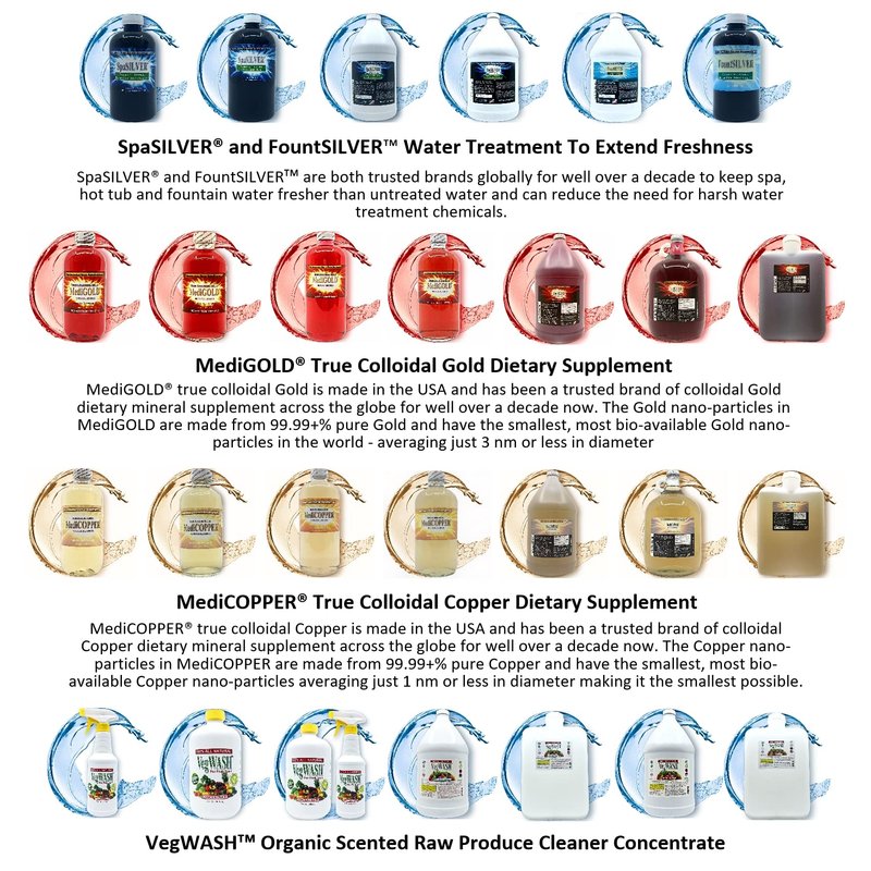 - Safe 20 ppm concentration of ultra-pure (99.99+% pure) Gold as 100% bio-available Gold nanoparticles in pharmaceutical grade pure water