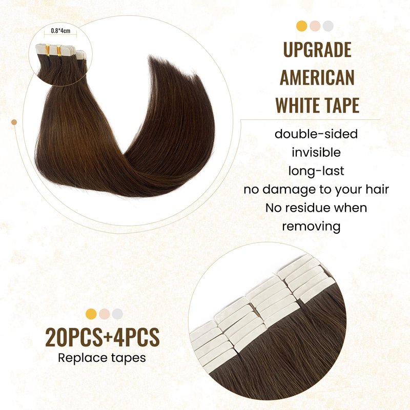 - 【Easy to Wear on & Take Out】Easy to get a desired hair length and hair volume by adding the tape in hair extensions,Add Volume & Length Easily! Pre-taped Extensions, for You Can Apply it Directly Once Receiving it. We Suggest that the Installation Process Should be Handed over to Professionals, so as to Avoid the Extensions Slide Off . We Use Replaceable Tapes, So You Can Retape the Extension Easily After Your Hair Growth