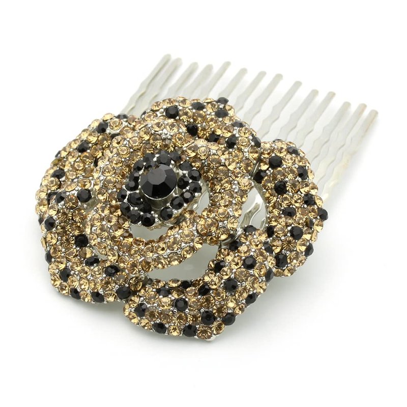 Medium Decorative Hair Comb Rhinestone Crystal Rose Bridal Hair Comb, Light Brown