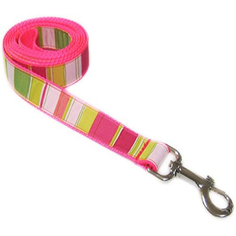 - Medium Neon Pink/multi stripe dog leash: 3/4" wide, 6ft Length - made in USA.