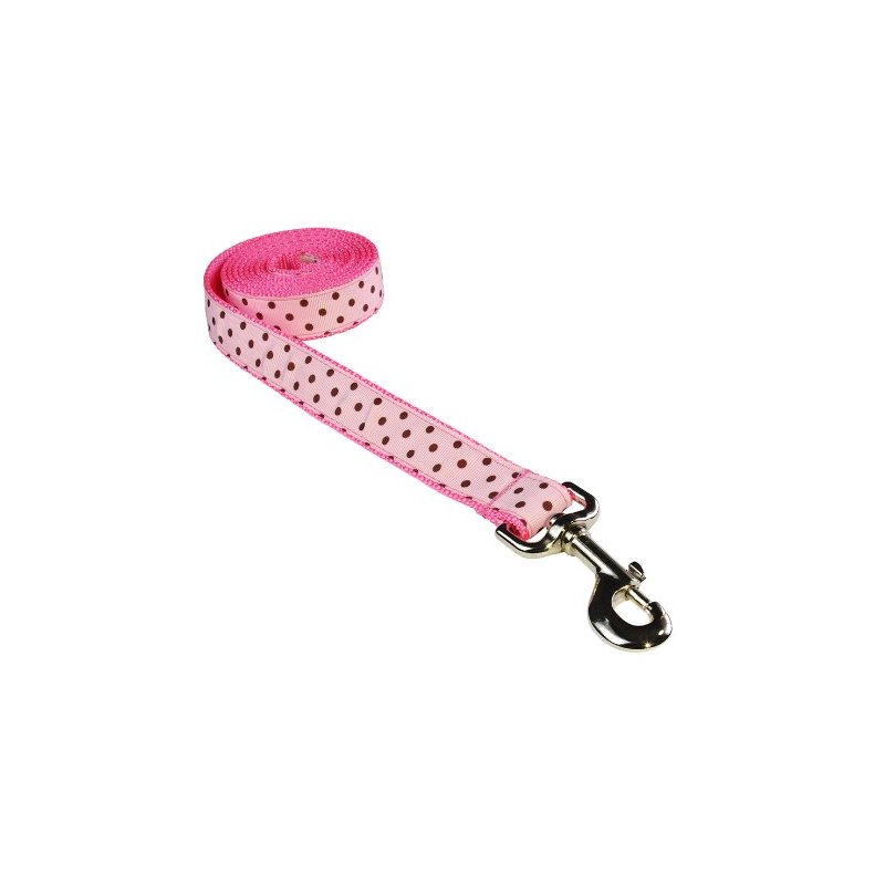 - Medium Pink/Brown Polka Dot Dog Leash: 3/4" wide, 6ft length Made in USA