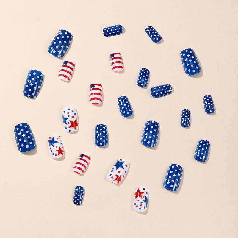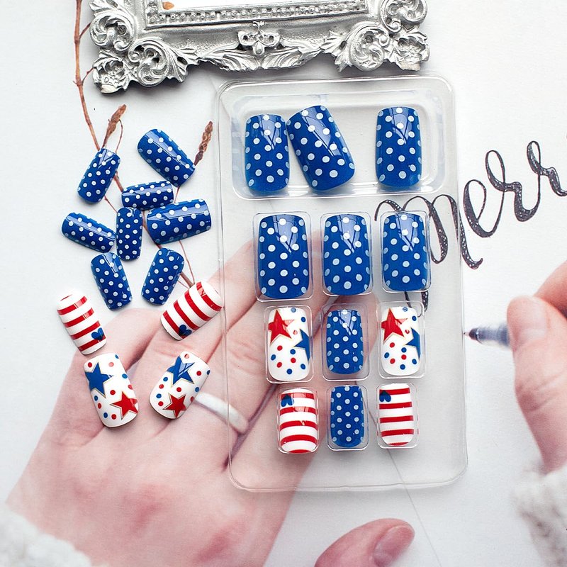 - ⭐【Vibrant Independence Day Design】: Celebrate in style with our stick-on nails featuring iconic American motifs in red, blue, and white. From stars and stripes to polka dots, these nails capture the spirit of Independence Day.