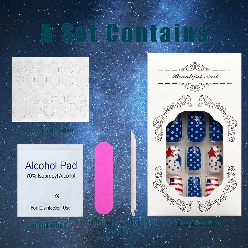 - ⭐【Perfect for Any Occasion】: Whether you’re hosting a Fourth of July barbecue or attending a patriotic parade, these stick-on nails are the perfect accessory to complete your look. Stand out from the crowd and show your American pride with our Independence Day nail kit.