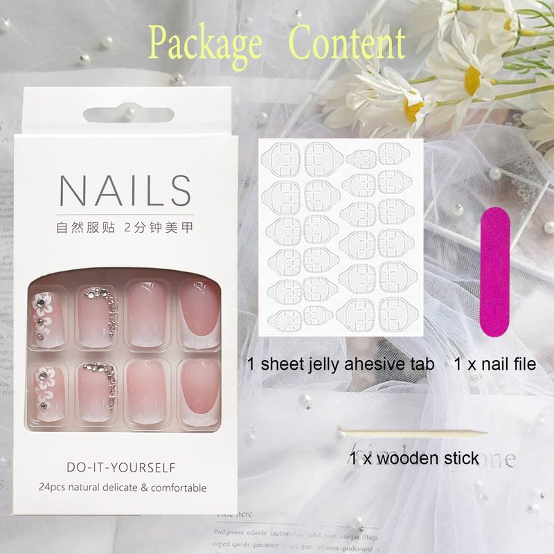 - Pink Nails Design: This non-toxic and odorless medium press on nails provides you with the most avantgarde finish, shape, color and length, and integrates the most popular floral and french tip elements into false nails, leading the new trend of nail enhancement.