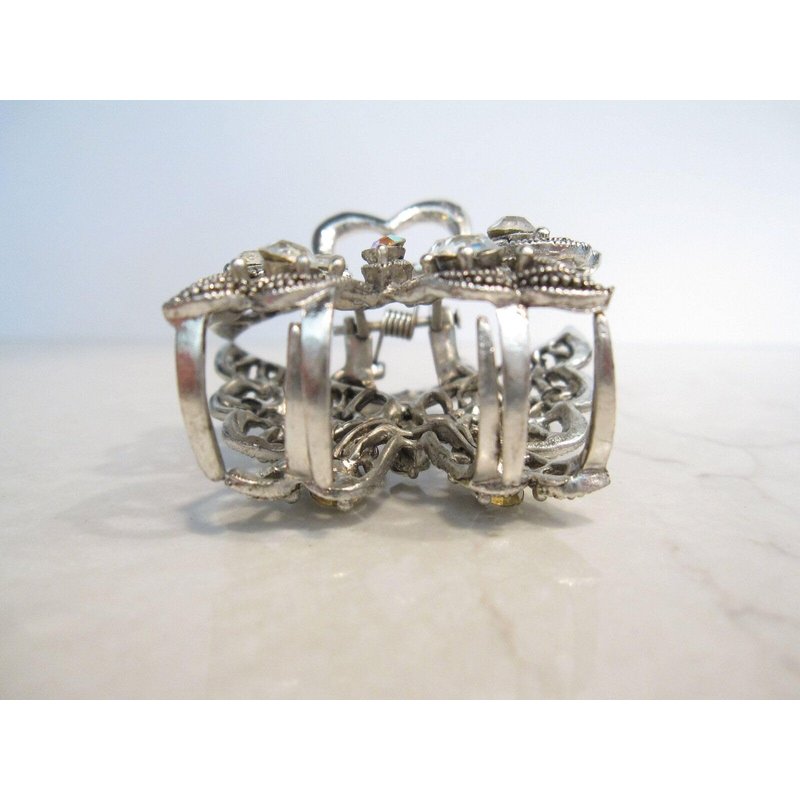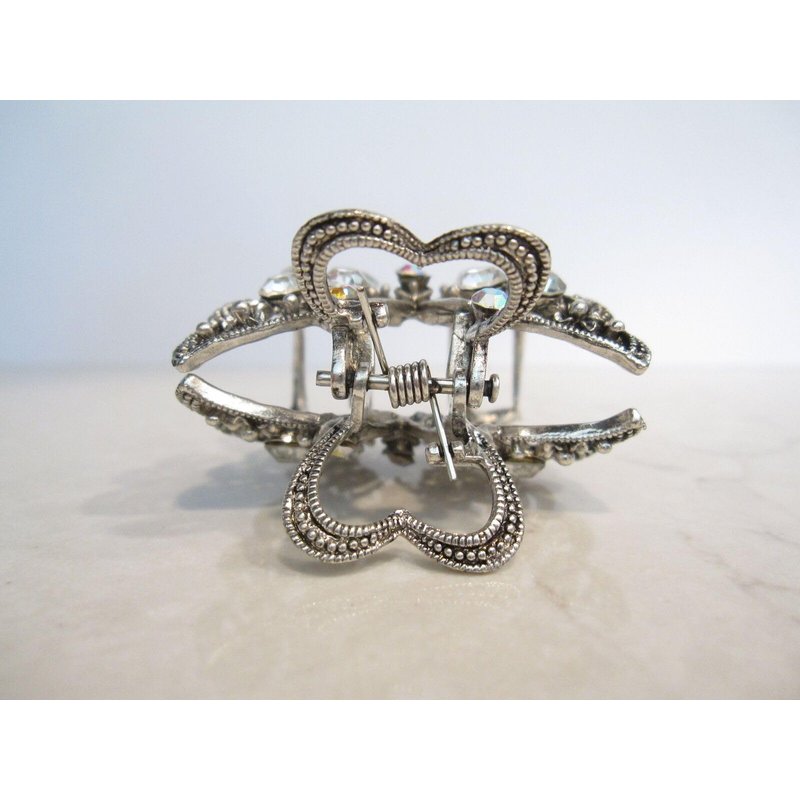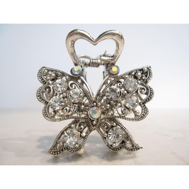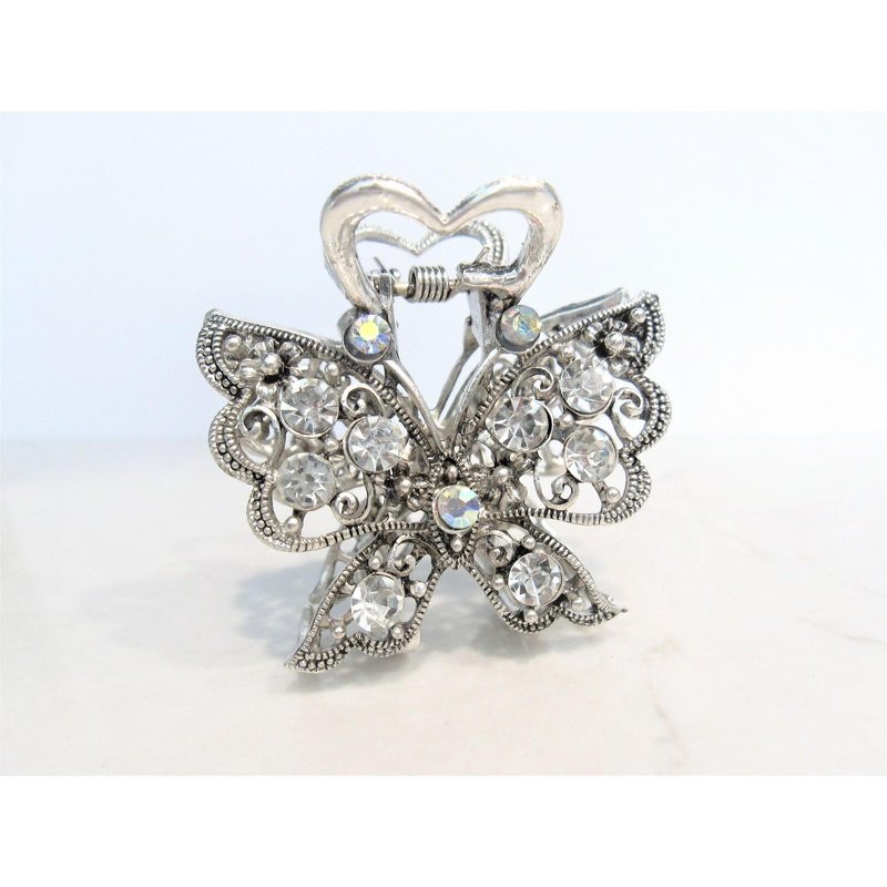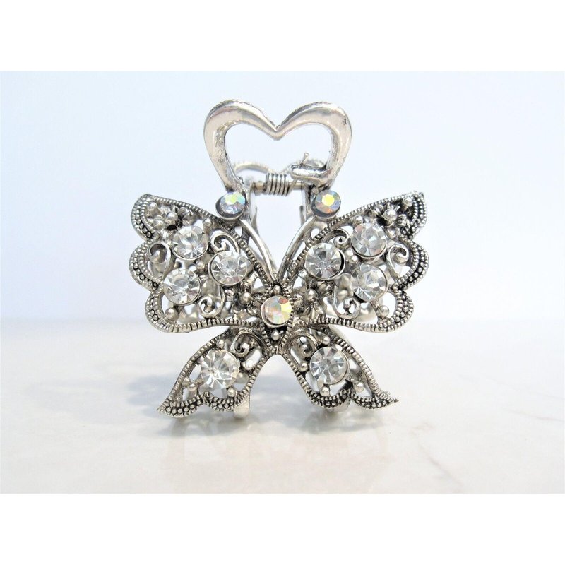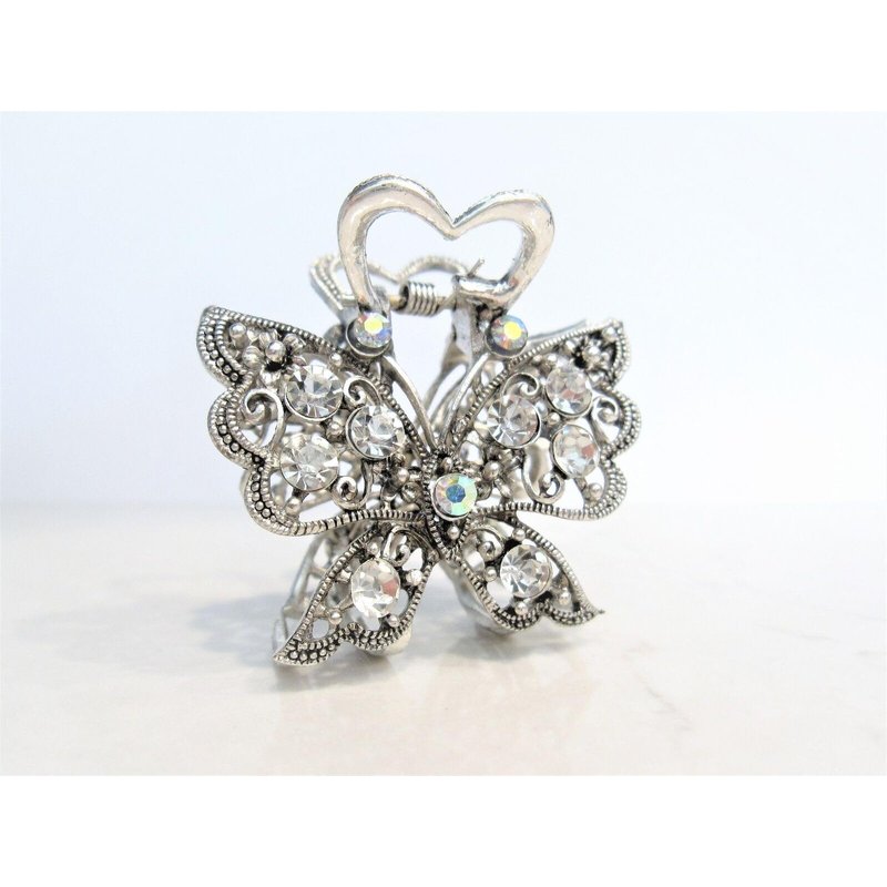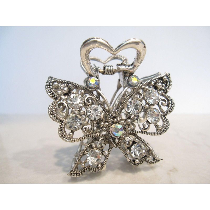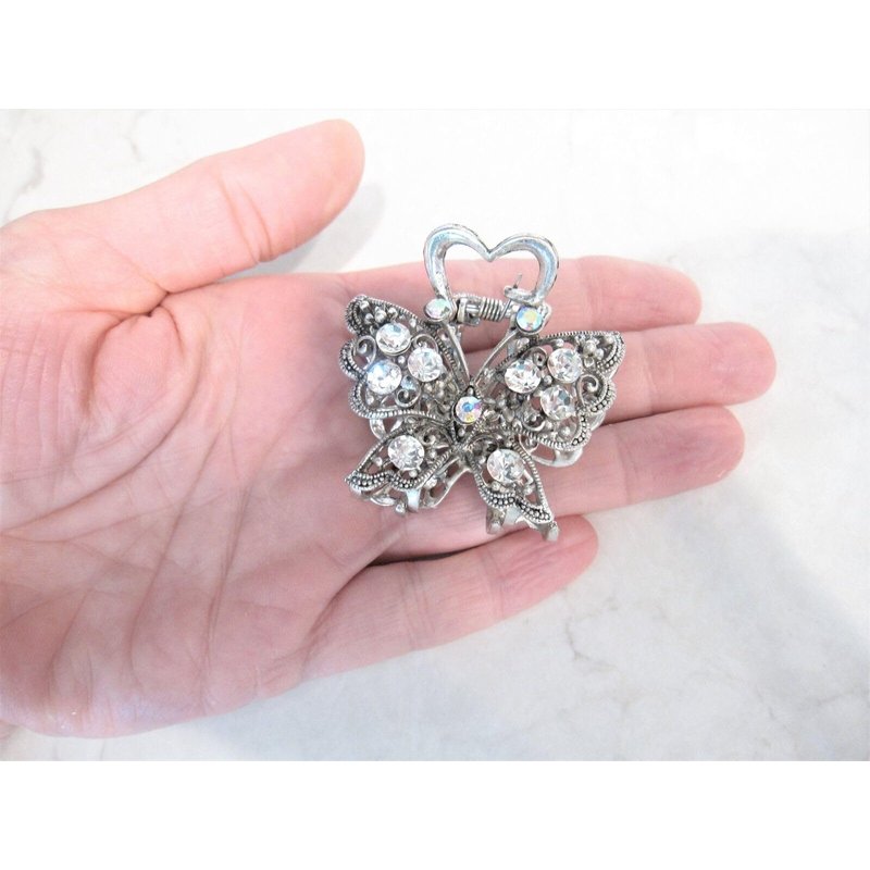 Medium sized silver metal crystal butterfly hair claw clip bridal clip
