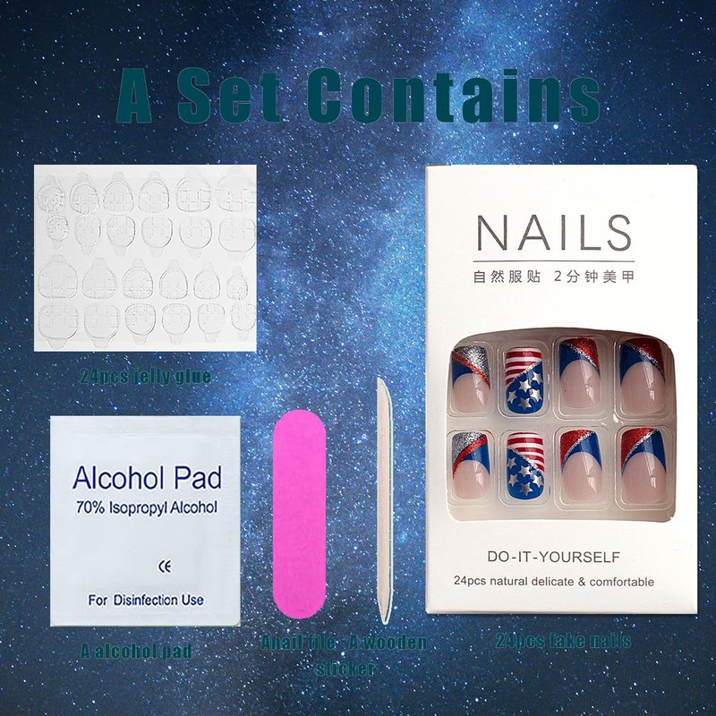- 【Express Yourself】: Let your creativity shine with our assorted designs, including striking stripes and bold five-star patterns. Whether you’re attending a festive celebration or simply expressing your individuality, our press-on nails are sure to make a statement.