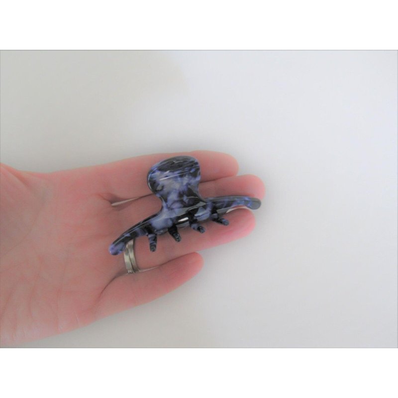 Medium/small dark blue marbled hair claw clip for fine, thin hair