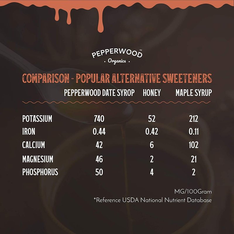 - ✔ IT'S GOOD FOR YOU! Full of vitamins, minerals, and antioxidants, date syrup contains less sugar than honey, maple, and agave syrup, so you can use it guilt-free.