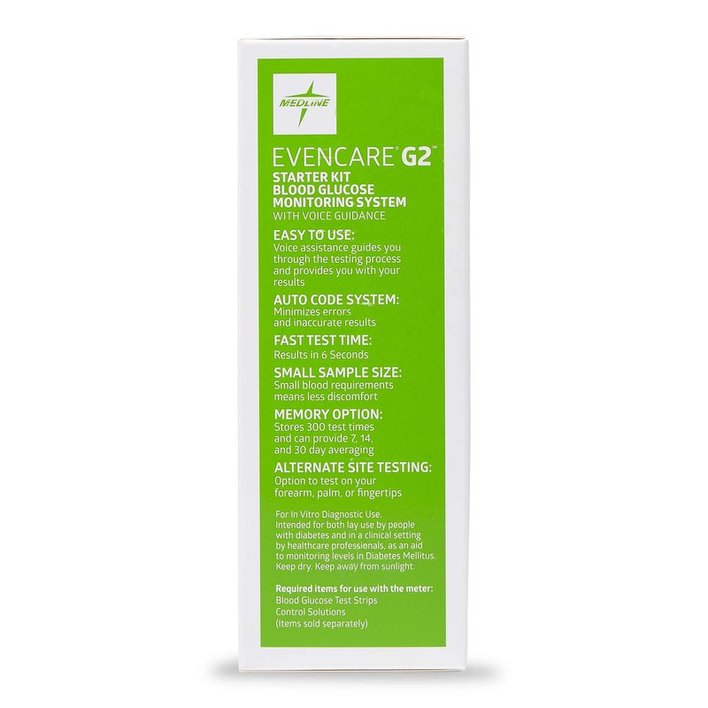 Medline EvenCare G2 Blood Glucose Monitor Starter Kit, Diabetic Care, 6 Sec Results, Meter, General Purpose Lancing Device & Lancets, Test Strips, Batteries, Guide, Carrying Case, Logbook, Voice Guidance