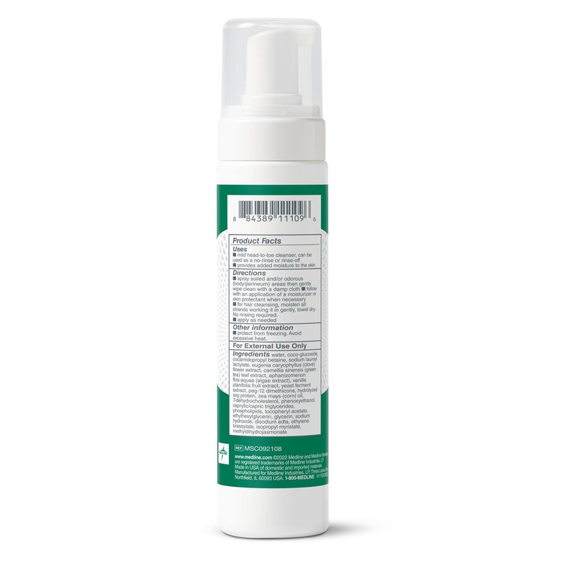 Medline Remedy Clinical No-Rinse Foam Cleanser, Vanilla Scent (8 fl oz), No Rinse Shampoo and Body Cleanser for Sensitive Skin, Hydrating, Paraben and Sulfate Free, For Face, Body, and Hair, All Ages