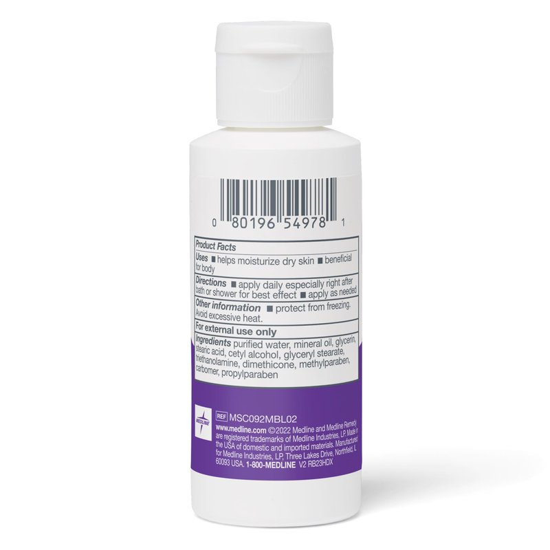 Medline Remedy Essentials Moisturizing Body Lotion (2 oz Bottle), Unscented, Travel-Size, Hydrating, Non-Greasy, For Dry Skin, Hypoallergenic, Men, Women, Elderly