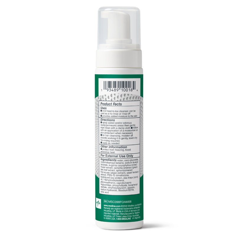 Medline Remedy Specialized No-Rinse Foam Cleanser, Gentle Skincare Solution, 8 oz. Bottle