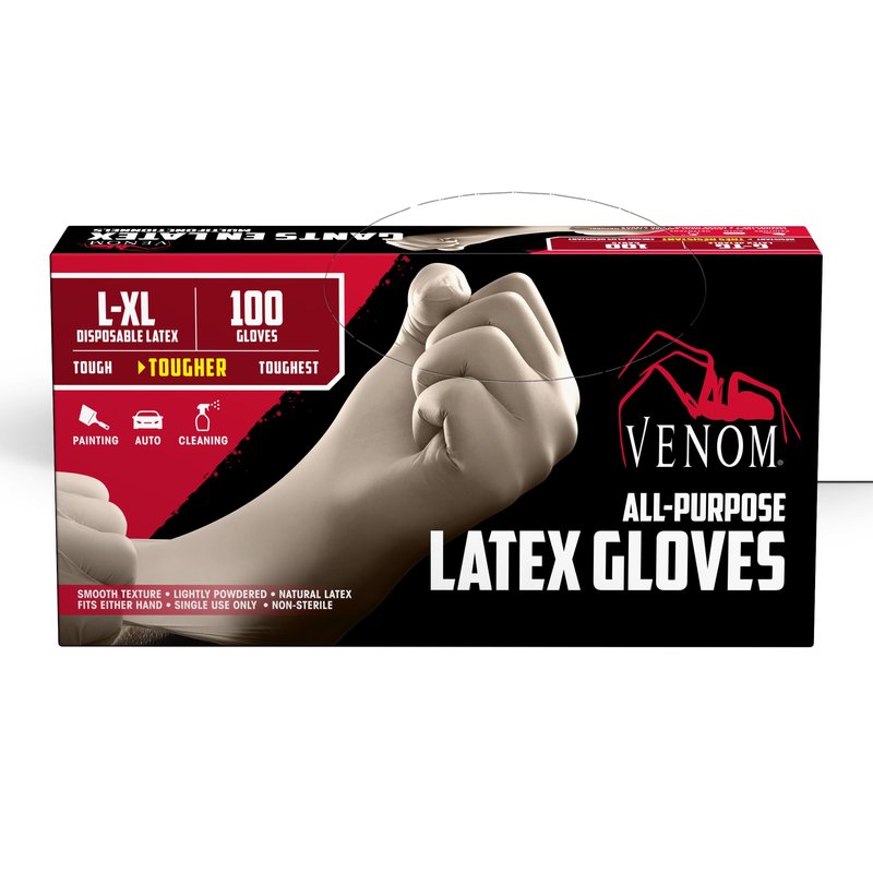 Medline Venom Powdered Latex Multi-Purpose Disposable Gloves, One-Size, 100 Count