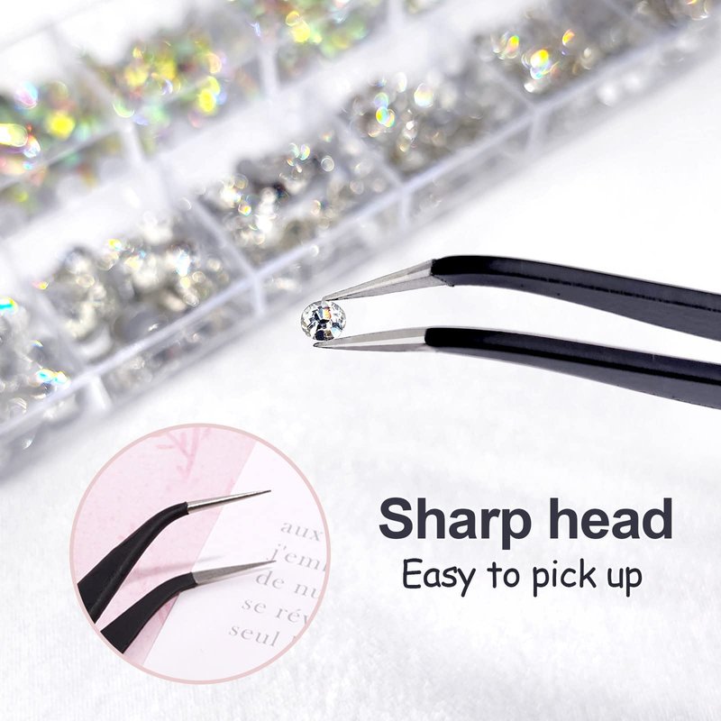- These nail diamonds have a flat bottom, strong adhesion, not easy to fall off, and can be easily picked up with the included dotting tool and tweezers.
