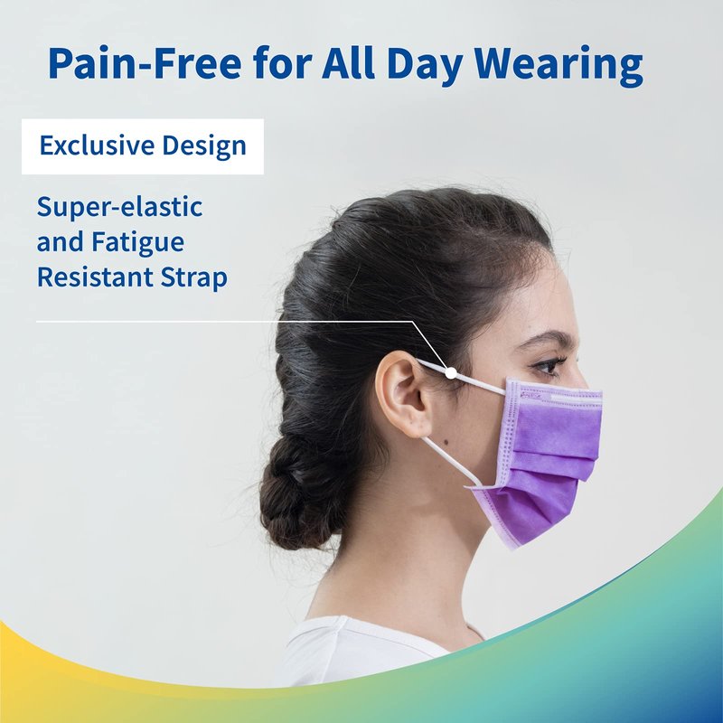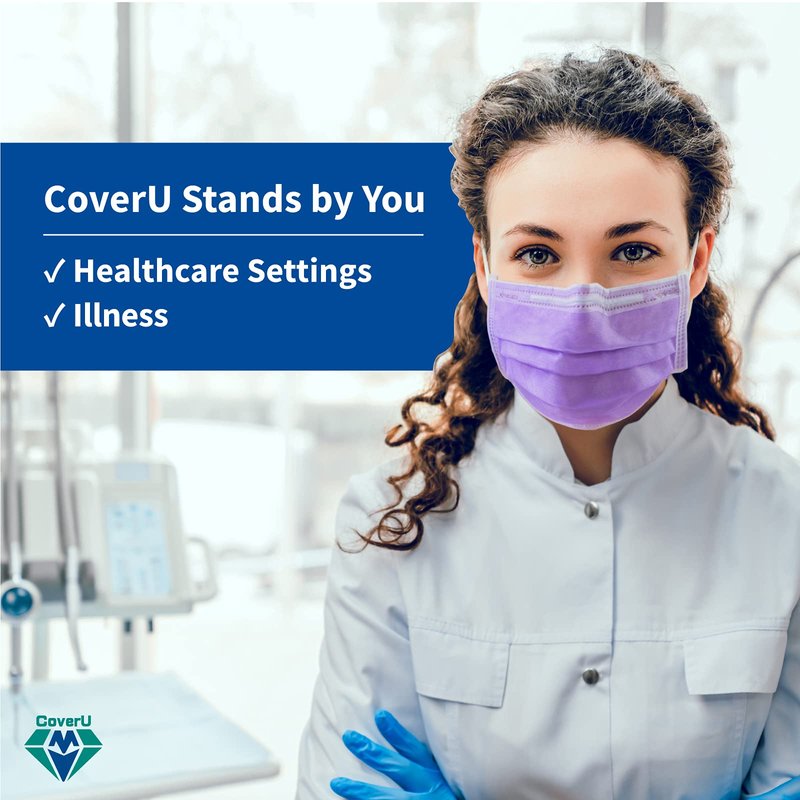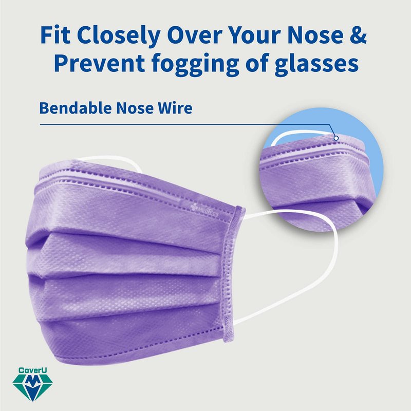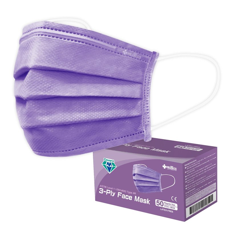 Medtecs Face Mask Disposable - 50/2000 PCS - Comfortable 3 Layer Breathable Mask, The Better Protection and Health Choice - CoverU Adult Mask - 50 PCS/Box - Lavender