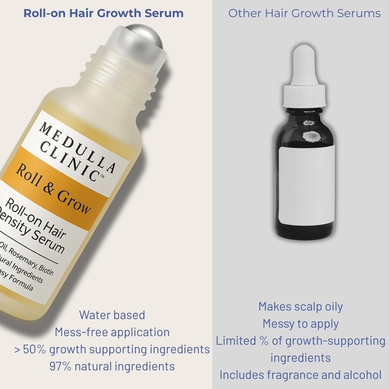 - Effortless Roll-On Application. Designed for precision and convenience, the Roll & Grow Hair Growth Serum Roll On delivers mess-free application in just seconds. Scientifically engineered for better absorption, easy to integrate into your daily routine, and perfectly travel-friendly to keep your routine consistent anywhere.