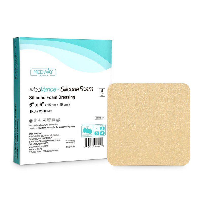 MedVance TM Silicone - Silicone Adhesive Foam Absorbent Dressing, 6"x6", Box of 5 dressings