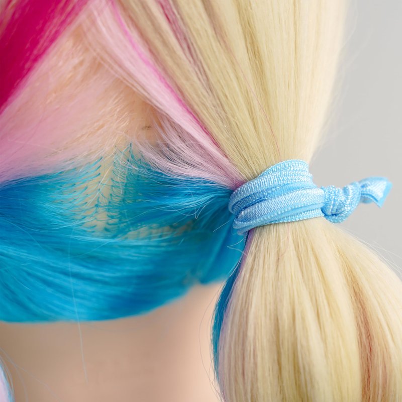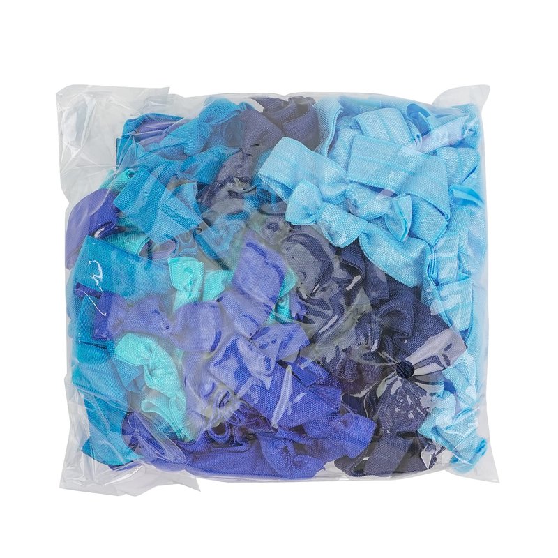- Our 5 perfect shades of blue package contains 100 pack solid color hair ties, 5 different colors with 20 pack of each light blue, turquoise, island blue, royal and navy color. Our hair ties are made of very soft fold over elastics with a satin look finish. Each hair tie measures approximately 3.7 inches in length (including the knot), when laid flat, allowing you to store an unused band comfortably on your wrist.