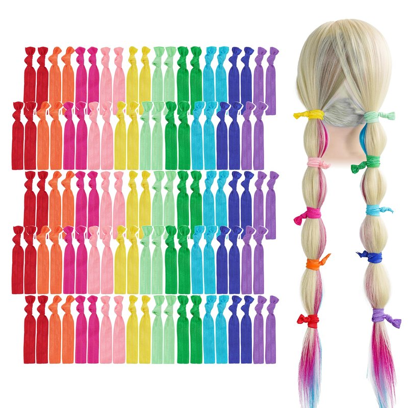 MEEDEE 100 Pack Rainbow Elastic Hair Ties For Women No Crease Soft Elastic Ribbon Hair Ties Knotted Hair Ties No Damage Pony Tails Hair Ties Ouchless Hair Ties Yoga Hair Ties Elastic Bracelets