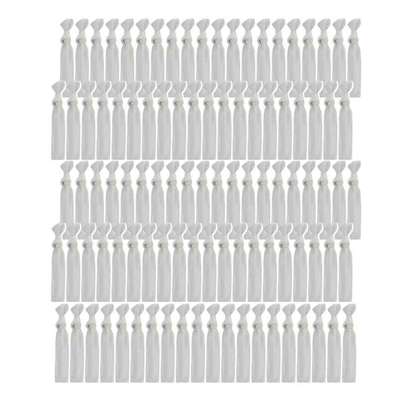 - 🤍 Our silver package contains 100 pack solid color hair ties. Our hair ties are made of very soft fold over elastics with a satin look finish. Each hair tie measures approximately 3.7 inches in length (including the knot), when laid flat, allowing you to store an unused band comfortably on your wrist.