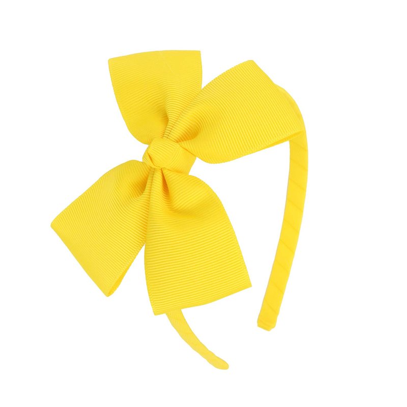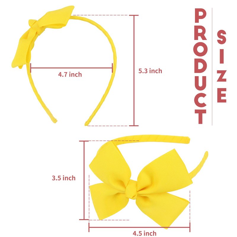 - 💛️ Package comes in: 1 PCs YELLOW grosgrain bow headband, approx size: 4.7" x 5.3" (L*W), bow size: 4.5" x 3" (L*W). Medium boutique bow on a grosgrain covered hairband. The size " large " indicates the bow size and not the hairband size. Our ribbon used is OEKO-TEX standard approved and the hairband contains no metal.